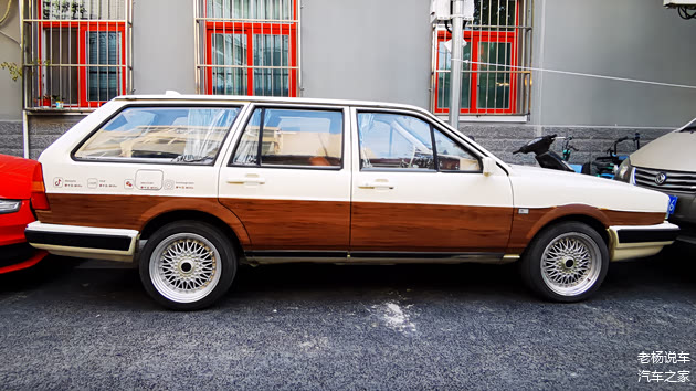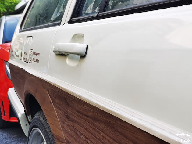 全车基本色调就是木纹黄色,底色是桑塔纳近点的白色,车身很用心的贴着文字贴纸。