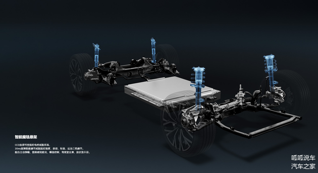 底盘与车身结构上,搭载CCD连续可变阻尼电控减振系统。车身采用一体式热成型硼钢门环、超弹体蜂窝填充技术,并创新运用“三叶草”正面碰撞传力路径设计提升安全性。