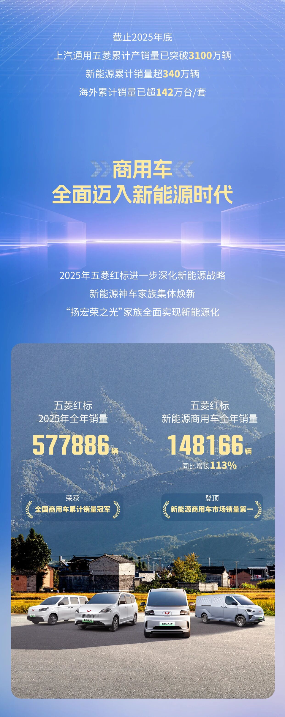 2025年,上汽通用五菱总销量1635066台,其中五菱红标全年销量577886台,五菱红标商用车全年销量148166台,同比大涨113%。五菱银标全年销量741310台,同比增长8.8%;宝骏品牌全年销量49002辆,同比增长12.3%。