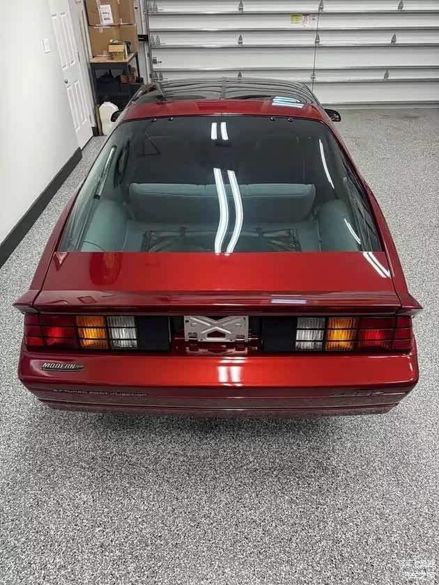 而让它身价倍增的,是近乎“出厂即封存”的极致车况。1987年,它从北卡罗来纳州温斯顿塞勒姆的Modern Chevrolet 4S店交付给首任车主,随后便被送进恒温车库,开启了长达37年的“沉睡”时光。104英里的里程,大概率只是从经销商到车库的距离,此后再也没真正上过路。如今它的状态,用“ showroom fresh”形容毫不为过:深邃的红色原厂车漆依旧光泽饱满,没有一丝划痕或褪色;原厂轮毂与轮胎保持着全新状态,胎毛或许都还在;内饰的灰黑配色座椅、中控台、门板,没有任何使用痕迹,塑料件的光泽感依旧,仿佛下一秒就能开出展厅。