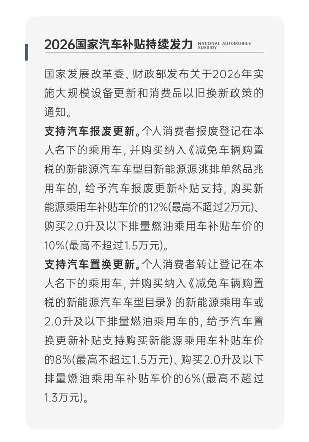 2026国家汽车补贴持续发力