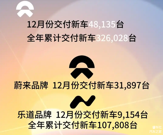 蔚来汽车2025年全年销量326,028辆,距离全年目标差距明显。不过虽然全年销量不如理想,但是最近几个月蔚来已经超过理想。12月份,蔚来三大品牌销量48,135辆,超过小鹏理想,重新进入第一阵营,给小鹏和理想带来巨大压力。蔚来的重新活跃,在于推出的乐道和萤火虫两大次级品牌,其中乐道品牌12月份交付9154辆,全年交付超过10万辆,几乎占据蔚来销量的三分之一。
