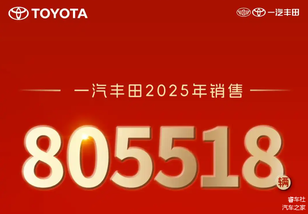 一汽丰田2025年全年销量超过80万辆,具体数字为805,518辆,在主流合资车企中表现出色,也是极少数实现连年正增长的车企,逐渐适应了全新的竞争模式。