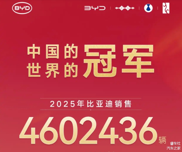 2025年市场销冠依然是比亚迪,这个基本无悬念,也没有争议。2025年12月份,比亚迪销量为42万辆,全年累计销量460万辆,同比增长7.73%,创历史新高。尤其是纯电车型几乎占据销量一半,全年销量225.67万辆,已经超过特斯拉的163.6万辆,真正成为全球第一;也就是说,2025年比亚迪不仅是新能源全球销冠,也已经是全球纯电销冠,特斯拉的冠军帽子正被比亚迪一顶一顶全部摘下来。当然,比亚迪在2025年确实出现了增长乏力,尤其是后半年表现一般,全年目标完成率只有83.68%。