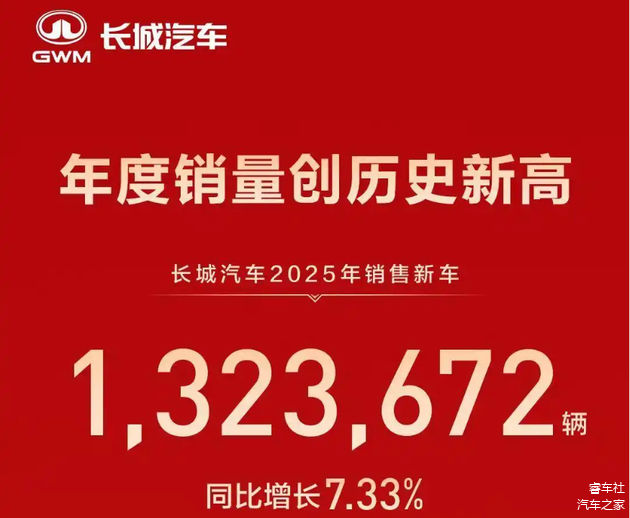 长城汽车2025年销售新车132万辆,具体为1,323,672辆,同比增长7.33%,创造历史新高,依然位列自主5虎之位,不过和前面四虎差距明显。值得注意的是,长城汽车已经连续多年销量徘徊在100万辆至130万辆之间,发展处于等待突破的瓶颈期。不过长城汽车又是一家特别适合在逆境中突破的企业,在瓶颈期几年,长城汽车对于旗下品牌进行了强有力的重塑:哈弗品牌通过不断推出新能源车型,逐渐刷新品牌形象;坦克品牌已经成为中国高端越野品牌的代表,在新疆和西藏正在迅速取代丰田陆巡和霸道;魏牌品牌在沉寂多时迎来新生,全新的高山已经成为同级主力车型,销量稳定在万辆级别,魏牌2025年销量超过10万辆,同比增长86.29%。;欧拉品牌逐渐淡化女性品牌的属性,更多面向家庭和青年消费群体,刚刚推出的欧拉5则是一部转型作品。所以我们可以给予2026年的长城汽车更多期待。