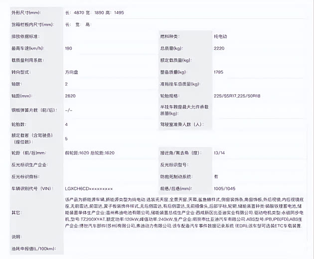 外观方面,从申报图看出,新车采用类似于海豹06ev的设计造型,或看成扩大版的海豹06ev。前脸外凸封闭式前格栅并加入内凹设计,更好的降低风阻,同时看上去更有层次感。