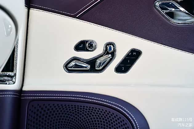 材质选择极为考究,主皮选用顶级Linen亚麻白,营造出优雅而洁净的氛围,副皮则采用深李紫,为座舱增添了低调的奢华感。木饰面板采用亚麻白钢琴木饰,经过工匠们精心挑选和打磨,确保纹理自然美观。遮阳板和行李厢内固定三角警示牌的皮带都采用顶级牛皮包覆,手感不亚于名牌箱包。车内超过10㎡的实木饰板,工匠们用双手对一整块木料进行取材,经过长时间打磨后,按照顺序及位置对内饰整体进行镶嵌,确保光泽度、颜色和纹理在车内表现得相当自然。座椅靠背还有"MULLINER"的手工刺绣,彰显其特殊身份。