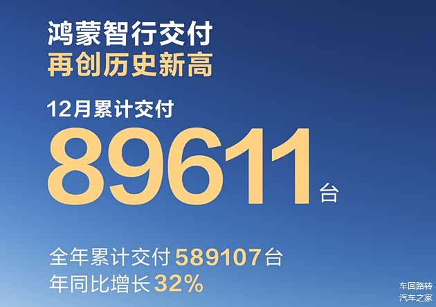 鸿蒙智行在2025年12月交付89611辆,再创历史新高,全年累计交付589,107辆,年同比增长32%。鸿蒙智行依托华为的技术优势和品牌影响力,在智能汽车领域迅速崭露头角,其产品在智能互联、自动驾驶等方面具有独特的竞争力,吸引了众多消费者的关注。
