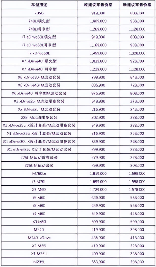先来说上了热搜的宝马,一次官宣降价几十款车型,其中降价比较大的两款车型,一个是宝马iX1 eDrive25L,官方指导价从29.99万降到了22.8万元,直降7万多;另一个是宝马i7 M70L,从之前的189.9万降到了159.8万,直降了30万元。