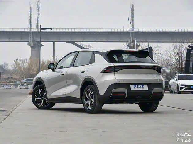再来看车身侧面部分,4435mm的车长与1855mm车宽构成紧凑比例,却通过2735mm超长轴距实现了空间最大化。半隐藏式机械门把手降低风阻的同时,避免了极端天气下的使用隐患。悬浮式车顶与流畅的腰线设计,使整车呈现出轿跑SUV般的优雅姿态。18英寸双色轮毂与溜背式车顶线条相得益彰,既保证了后排头部空间,又强化了运动气质。车身配色提供松野绿、流金紫等5种年轻化选择,满足个性化需求。