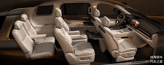 长5252毫米、轴距3米11,提供六座和七座布局。车内双层叠环绕座舱设计在保持简洁风格的同时加入半苯胺头层真皮座椅,经无铬鞣与茶多酚环保处理,抑菌率≥98%;天鹅绒顶棚、V 字拼花木纹饰板、25㎡超大软包面积,营造轻奢质感。