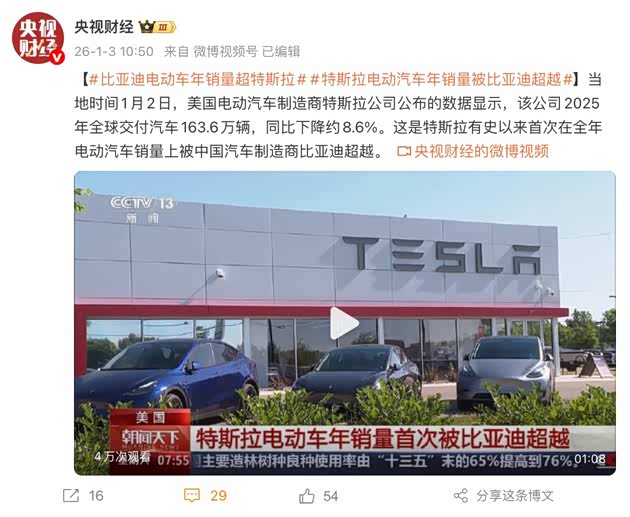 2025年的全球电动车市场,又被比亚迪刷新记录了,央视直接公布了相关数据。之前比亚迪一直在新能源汽车总销量上保持第一,但在纯电车型年销量上却一直不如特斯拉,今年,比亚迪一举在纯电车型的销量上超越特斯拉,成为了全球新的纯电销量冠军。这可是个里程碑式的时刻,小徐敢说,这绝对是全球纯电市场的格局变天的新开始!