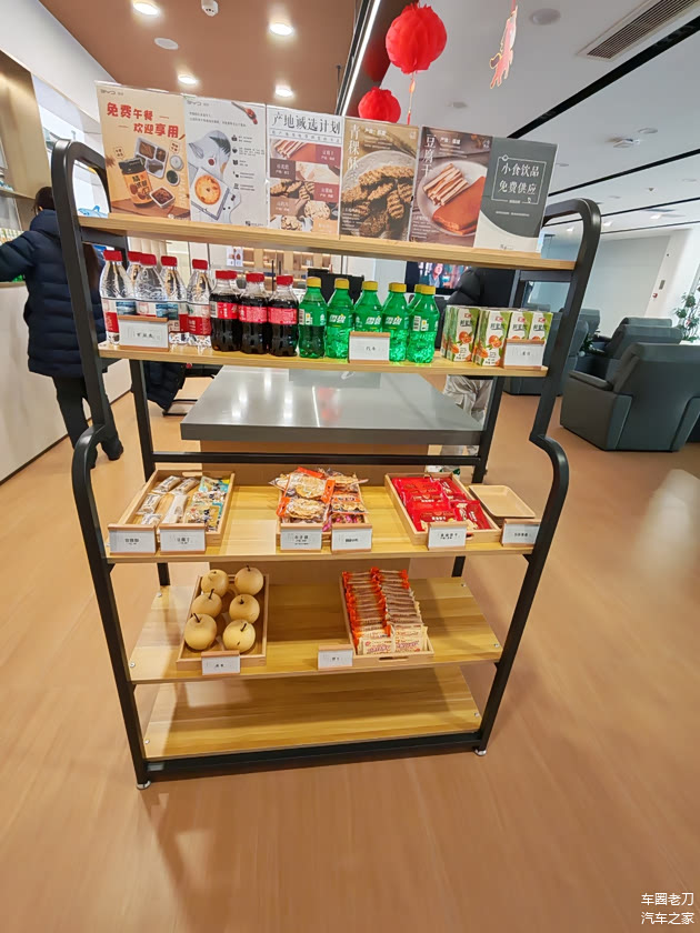 除了正餐以外,还有免费的咖啡、饮料、零食,水果。你只要豁出老脸,美国的斩杀线都斩不动你,比亚迪的4S店就能让你把肚子填饱。