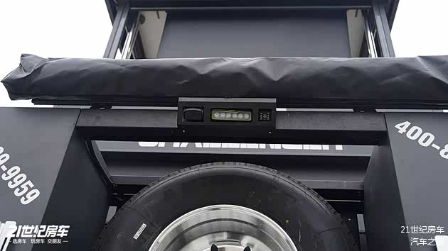 车外3米电动遮阳棚+270°户外边账,大幅拓展露营空间,做饭乘凉无惧日晒;尾部电动升降机构既是稳定支撑,又集成了背驮式储物箱、摩托车车架、备胎与工兵铲,再加上豪华户外厨房,越野露营的硬核需求统统满足。