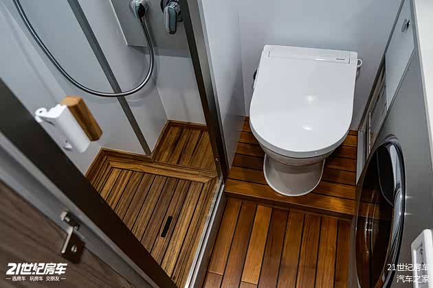 干湿分离的卫生间更是细节满满,铝木材质沥水板耐用抗造,干区加热去雾化妆镜、电动马桶、洗衣机一应俱全,湿区一体式花洒杜绝漏水烦恼。