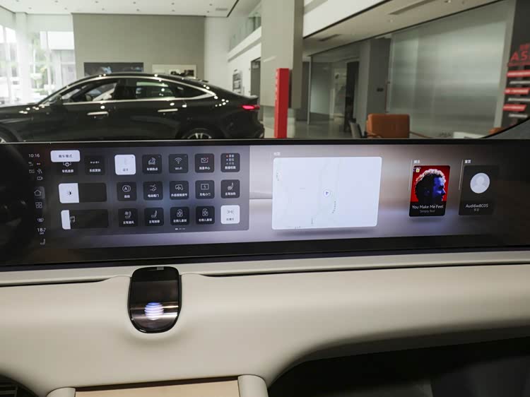 内饰部分,奥迪E5 Sportback的内饰采用的是环抱式的设计布局,中控台上的巨幅大屏具有较强的视觉冲击力,是由12.3英寸的全液晶仪表盘和27英寸的中控屏组合而成,配备的是AUDI OS车载智能系统,内置了高通骁龙8295车载智能芯片,智能化表现非常丰富,支持手机App远程控制、百度地图导航、蓝牙/车载电话、CarPlay、Carlink、HUAWEI HiCar、车联网、OTA升级、面部识别、语音识别控制系统、Wi-Fi热点以及应用商店拓展等功能,对于日常驾驶能够起到足够高的便利性,上下平底样式的三幅式多功能方向盘造型时尚美观,采用的是皮质的材质,支持四向电动调节,并带有记忆和加热功能,换挡形式为电子式怀挡,并在前排中央扶手处配备了手机无线充电功能和2个USB/Type-C的多媒体接口,能够保障多个电子设备的充电需求。车厢内采用了大量的皮质进行包覆,加上30色渐层律动氛围灯的营造,使其凸显出一定的豪华氛围感。