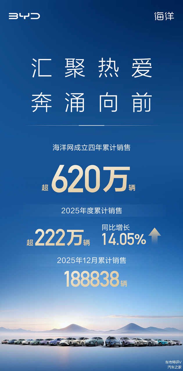 随着时间跨越到2026年,各大汽车厂商纷纷公布过去一年的年终大考成绩,陆续亮出各自产销数据。从本篇开始,我们也将开启2025年度的汽车销量盘点专题,今天盘点的是比亚迪。