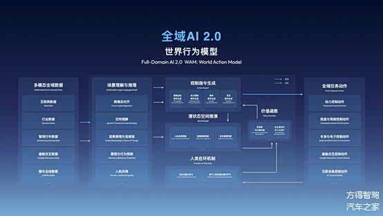 全域AI 2.0的核心突破在于WAM世界行为模型,实现整车跨域融合,让汽车首次具备了持续进化的“世界观”和“判断力”。