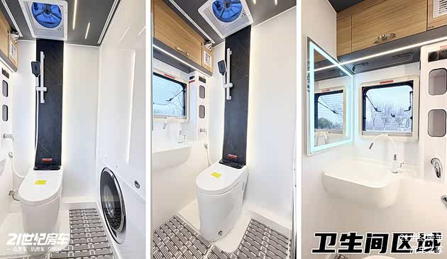卫生间的人性化设计,让品质生活不打折扣。一体成型式可拓展卫生间,有效提升使用空间,避免局促感。智能粉碎马桶/抽拉旋转马桶可选,搭配污水箱防反味处理系统,兼顾卫生与便捷。淋浴花洒、洗手池+旋转水龙头的完整配置,带来如家般的沐浴体验。雨感双向换气扇保持室内空气流通,卫生间外推窗保障采光,独立照明系统让夜间使用更方便。3公斤洗烘一体机的加入,解决了长途旅行的洗衣难题,让衣物随时保持洁净干爽。
