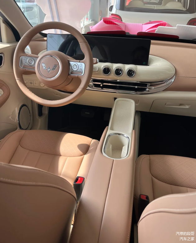 我们先来看看作为家族基石的2025款五菱缤果。它给人的印象是圆润、精致的复古范儿。对于每天在城市中穿梭的上班族来说,不到4米的车长,无论穿梭小巷还是找停车位都格外灵活。但你别看它身材小巧,设计师在“偷空间”上很有一套。轴距有2560毫米,纵向空间利用率很高,坐进后排并不会感到局促。