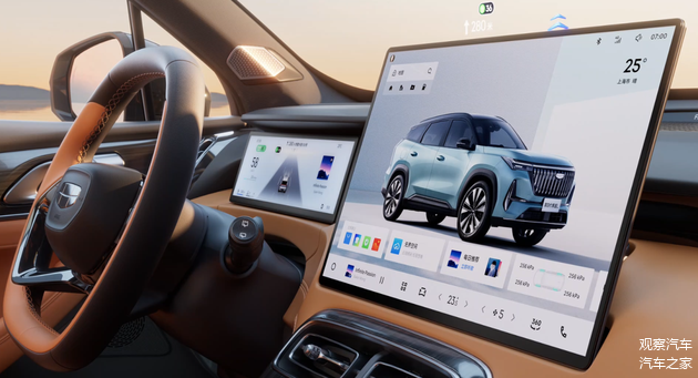 在智能化层面,第四代博越L彻底打破了燃油车的传统印象。它全系标配了基于7nm制程龍鹰一号芯片的Flyme Auto智能座舱系统,该芯片AI算力达8TOPS。车辆搭载一块15.4英寸的2.5K超清全面屏,屏占比高达87.04%。此外,还配备了同级独有的25.6英寸AR-HUD抬头显示和16扬声器的Flyme Sound无界之声音响系统(含头枕音响),支持四音区语音交互。这意味着,从交互流畅度、娱乐体验到智能便捷性,它都向主流电动智能车看齐。