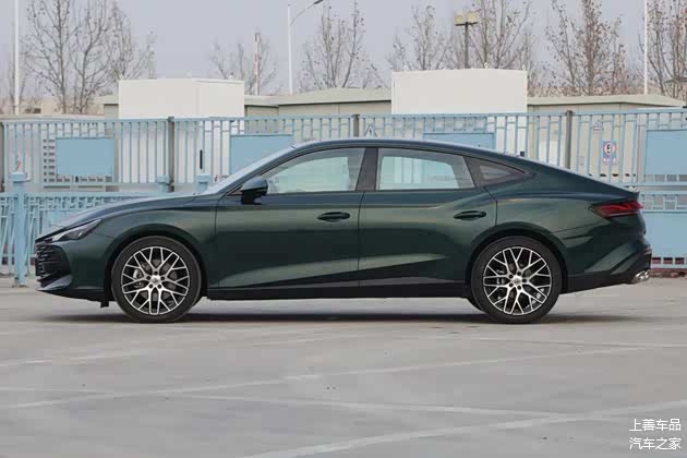 车身尺寸方面,MG7长宽高为4884x1889x1447mm,轴距2778mm,定位B级车,车身侧面采用的是经典的Fastback溜背设计,贯穿式腰线从翼子板延伸至车尾,搭配无框车门与多辐式运动轮毂,轿跑姿态尽显。新车还提供有全新的鸟巢状轮毂,其中标准版采用银色亮面材质,运动版再对其进行黑化处理。