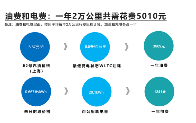 作为一款插混SUV,全新领克08 EM-P 230超长续航Ultra可加油可充电,总体来说用车成本不会太高。当然,考虑到每位用户的用车需求不一样,加油和充电习惯也不同,在油费和电费开支计算上难免会存在差异。我们假设用户每年行驶里程为两万公里,其中加油和充电各占一半。首先,油费方面,官方数据显示,领克08 EM-P 230超长续航Ultra的WLTC最低荷电状态油耗为5.5升/百公里,该车型可加注92号汽油,目前上海地区92号汽油价格为6.67元/升,那么该车型一年下来的油费开支大约为3669元。