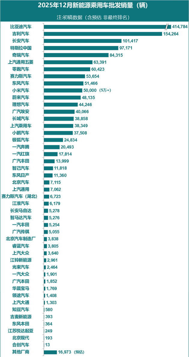 2025年的年终销量榜,是一张清晰的分水岭图。线的上方,是比亚迪、吉利等凭借全面新能源化与全球化实现跃迁的领跑者;线的下方,则是所有尚未在这两大核心赛道上建立绝对优势的参与者。