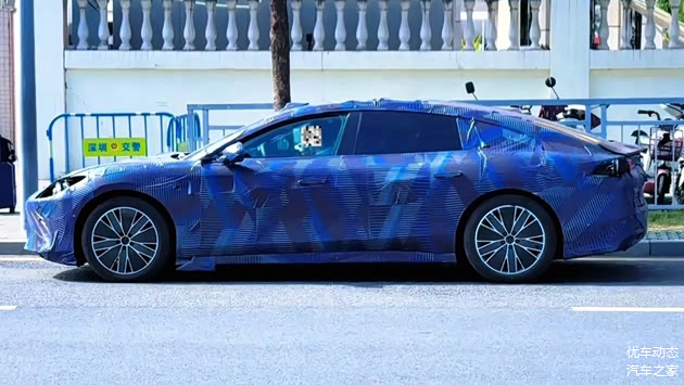 车身部分,新车的设计同样是颇具看点,四门轿跑式的轮廓营造出低趴运动的姿态,无框车门更是点睛之笔,瞬间提升了整车的时尚与科技感,车门把手采用了隐藏弹出式设计,让车身侧面更显简洁,腰线处理得柔和而富有张力,延伸至车尾部分形成宽阔的“肩线”,让车身后段看起来更有力量,而在细节上,前翼子板与前门之间还有相互呼应的型面过渡,后三角窗的下沿微微上扬,为车身增添了一丝灵动。