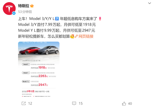 特斯拉开年促销政策来了!