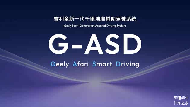 活动期间,吉利公布了千里浩瀚辅助驾驶系统的全新英文品牌名:G-ASD(即Geely Afari Smart Driving),其作为千里浩瀚整体解决方案的英文名及软件版本命名,代表着吉利与千里智驾联合研发的高含模量智能辅助驾驶解决方案,旨在为吉利体系下的用户提供同等级下最优质的体验。