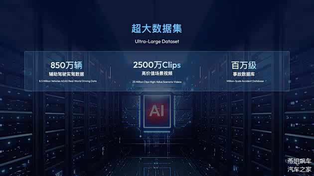 千里浩瀚G-ASD拥有的“超大数据集”。不仅拥有吉利旗下累计850万辆车的辅助驾驶和累计百亿智驾历程,行业领先的2500万clips模型数据片段,还具备行业第一的百万车辆事故安全数据。在全生命周期数据闭环系统下,“数据飞轮”将持续迭代进化,辅助驾驶系统“越开越聪明”。