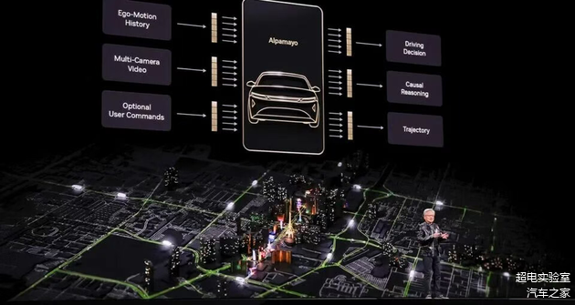 比如在十字路口,它不只是识别出“前方有车”,而是能推理”那辆车可能要左转,所以我应该等它先过”,这种能力让自动驾驶从“按规则行驶”升级到“像人一样思考”。现场演示中,老黄给出了一段Alpamayo全程零接管点到点的Demo。