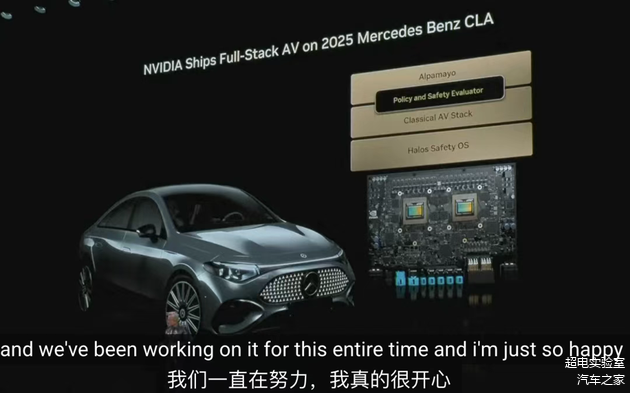 黄仁勋表示,搭载英伟达自动驾驶软件的全新 奔驰CLA是全球唯一同时运行这两套自动驾驶系统的汽车。