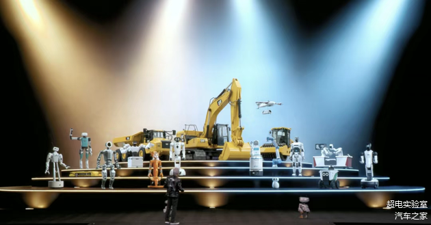 当然,以上这些还远远不是黄仁勋演讲的所有内容,比如机器人的“全家桶”秀,舞台上站满了不同形态、不同用途的机器人,从人形机器人、双足与轮式服务机器人,甚至还有CAT旗下的工程机械车。