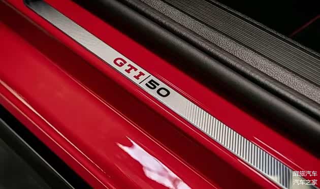 在车内的方向盘上还镶嵌了“50”周年纪念徽章。座椅升级为带菱形缝线的运动桶椅,头枕处绣有红色GTI标识。中控台中央的8.25英寸触控屏内置专属UI界面,启动时显示50周年动态开机画面。