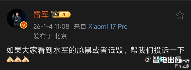 1月3号雷总的直播,除了拿来一辆YU7进行拆车讲解之外,更是预留了一段时间专门对近期的一些节奏和谣言进行解释。雷总在直播完的第二天还特地发了个微博说: