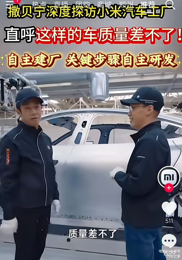 小米请来撒贝宁参观工厂和试驾体验,现场感受小米汽车的质量;