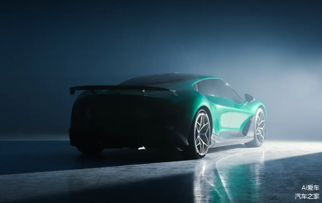 侧面车身线条很激进,集成了主动导流特征。这意味着车身某些部件能根据车速自动调整角度,保证高速时的动力平衡。轮毂用了多辐铝合金设计,黄色刹车卡钳配打孔式刹车盘,这套组合一般出现在性能车上。尾部的大尺寸扰流板和气流扩散器也是服务于空气动力学,贯穿式LED矩阵尾灯则是当下主流设计语言。