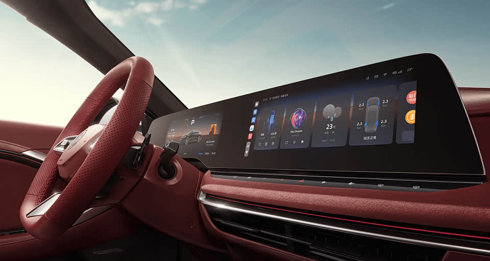 -内饰配备33英寸双联屏和高通骁龙8155芯片,响应速度提升30%。AI语音大模型的加入让语音交互更自然流畅。