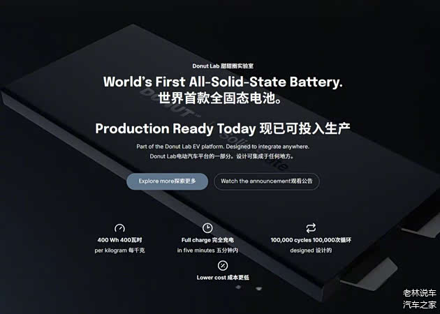 关于该固态电池的账面数据,能量密度可达400Wh/kg,充电时间5分钟内,循环充放电次数可达10万次。