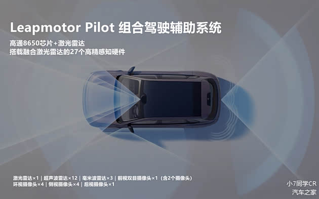 聊完了外观和内饰设计,下面我们来看看零跑B10在辅助驾驶方面的表现:我体验的车型版本(510激光雷达版)搭载了“激光雷达在内的27颗感知硬件”,配合“Leapmotor Pilot组合驾驶辅助系统+高通8650计算平台”,使得车辆具备了:NAP高速领航辅助、CNAP城市通勤领航辅助、HPA停车场记忆泊车等多项辅助驾驶功能。