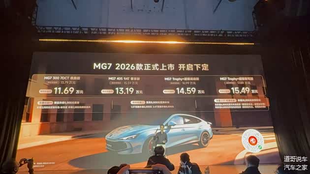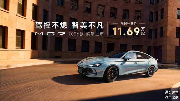 1月6日,2026款 名爵MG7正式上市,包含四款车型,官方指导价区间13.79-17.89万元;限时补贴价11.69-15.49万元。从价格上看,2026款车型与2025款区别不大,主要是限时补贴价比较惊喜,作为一款中型轿跑,MG给出了更大的诚意。
