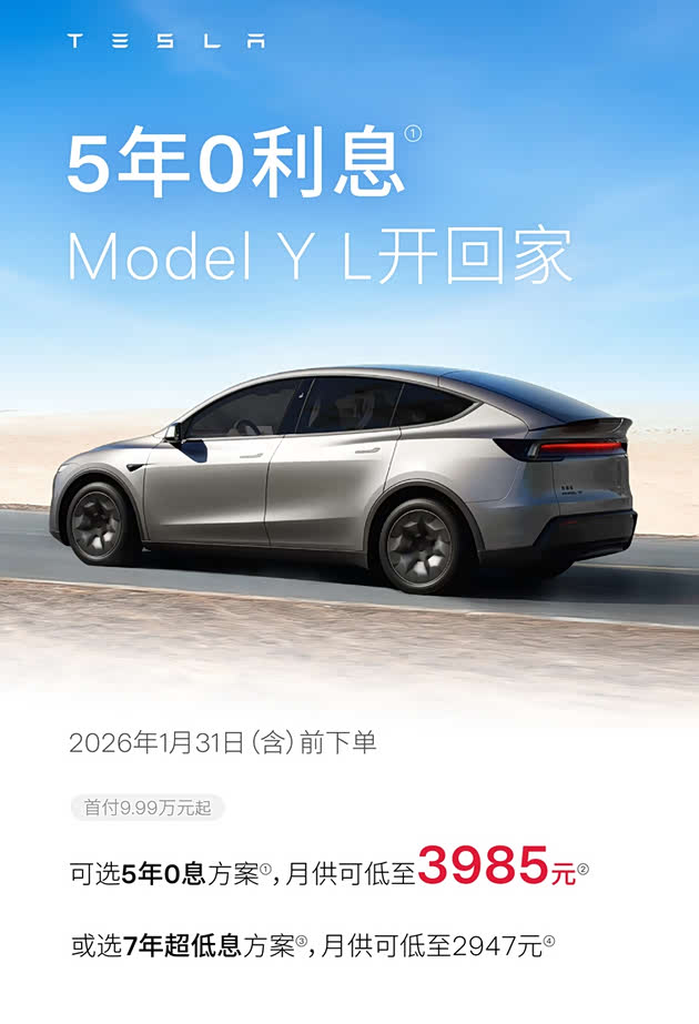 除了新的7年期分期方案之外,这次特斯拉还将Model Y L加入到了之前的5年0息方案中,月供可以低至3985元。Model 3这次还带来了一个名为“海洋蓝”的全新配色。总之这次特斯拉的分期方案对于有稳定收入但存款不多的人群相当友好,以不高的资金占用就能喜提爱车,剩下的月供,只要收入稳定那就问题不大。