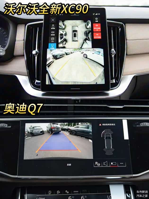 在辅助驾驶方面,两款车均支持全速自适应巡航、车道保持和并线辅助等功能。但沃尔沃全新XC90搭载Pilot Assist辅助驾驶系统和City Safety城市安全系统,支持360度全景影像、起步提醒和防侧翻系统等功能。而奥迪Q7多了一个Valeo法雷奥激光雷达,但不支持起步提醒和防侧翻系统,摄像头和超声波雷达也比沃尔沃XC90要少,辅助影像只有倒车影像。