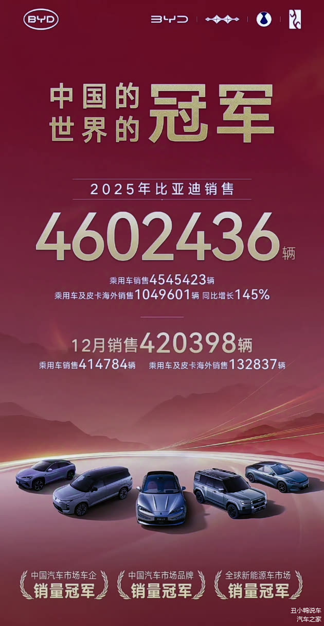 当比亚迪宣布2025年全球销量突破460万台时,简直就是给电动汽车行业扔出一个王炸,直接让西方媒体坐不住了,其中美媒纷纷报道称比亚迪纯电汽车销量首次超过特斯拉,成为全球第一。根据特斯拉和比亚迪公布的数据,前者纯电车销量163.6万台,后者则高达225.67万台,比亚迪领先62万台。在2024年时,特斯拉是179万辆,BYD是177万辆,很明显,特斯拉销量在下滑,而比亚迪在飙升。