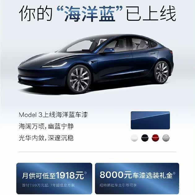 Model 3/Y首付7.99万起,月供可低至1918元; Model Y L首付9.99万起,月供可低至2947元;