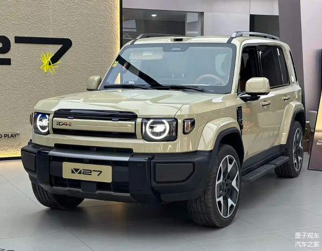 对于喜欢路虎卫士这类方盒子造型,同时手中预算也有限的朋友,最近不妨关注一下奇瑞旗下的 iCAR V27,最近这款车已经到店了。作为一款中大型SUV,iCAR V27采用硬派风格,长宽高分别为5055(备胎款)/1976/1894mm,轴距2910mm,相比路虎卫士的块头几乎没有差别。整体设计非常硬汉形象,而且整体造型真的有点路虎卫士的既视感,并提供蓝、黄、银、灰、白等多种配色可选,不管你是喜欢低调沉稳的,还是张扬个性的,都能挑到合适的颜色,开在路上回头率肯定爆表。