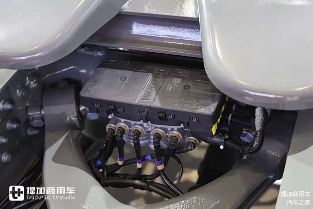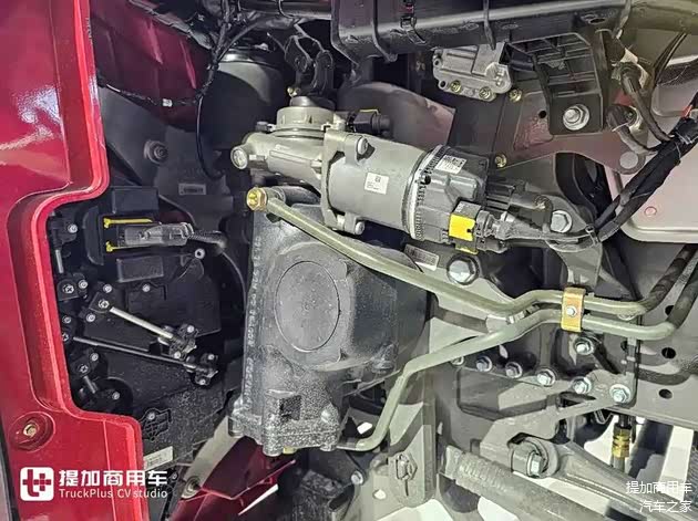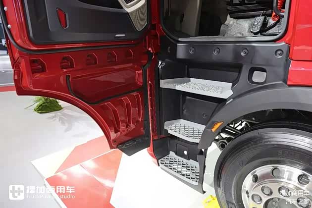 后桥是新款曼技术单级减速桥,直接挡匹配的速比为2.85,如果是超速挡就是配3.36。轮胎规格为12R22.5,全车固特异B+级别低滚阻轮胎,搭配铝合金轮辋,做到省油与轻量化的双兼顾。