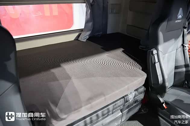 卧铺的最大宽度为1.2米,即便是气车也不会因为后背气瓶缩减卧铺尺寸,同时卧铺垫的填充更足,厚度要厚一些,但是也不至于软的让驾驶员睡不着觉。